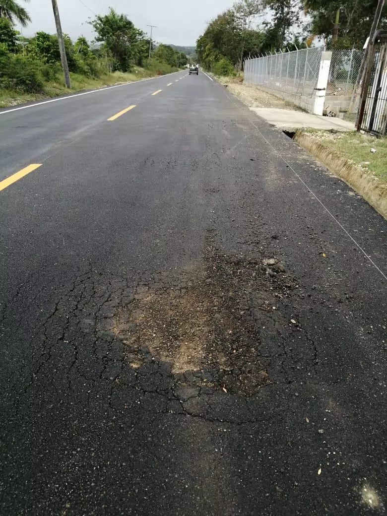 Lamentan que a solo horas de la aplicación de la carpeta asfáltica de la carretera que conduce a El Cupey atravesando la comunidad de La Vigía, enormes baches pueden observarse en el trayecto, sobre todo en el tramo próximo al restaurante La Katalina.