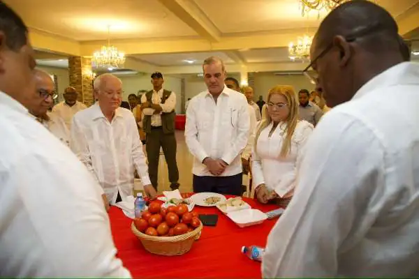Durante el acto, el presidente Abinader resaltó la importancia del Clúster del Tomate, que fortalece la producción y comercialización de este rubro en la provincia.