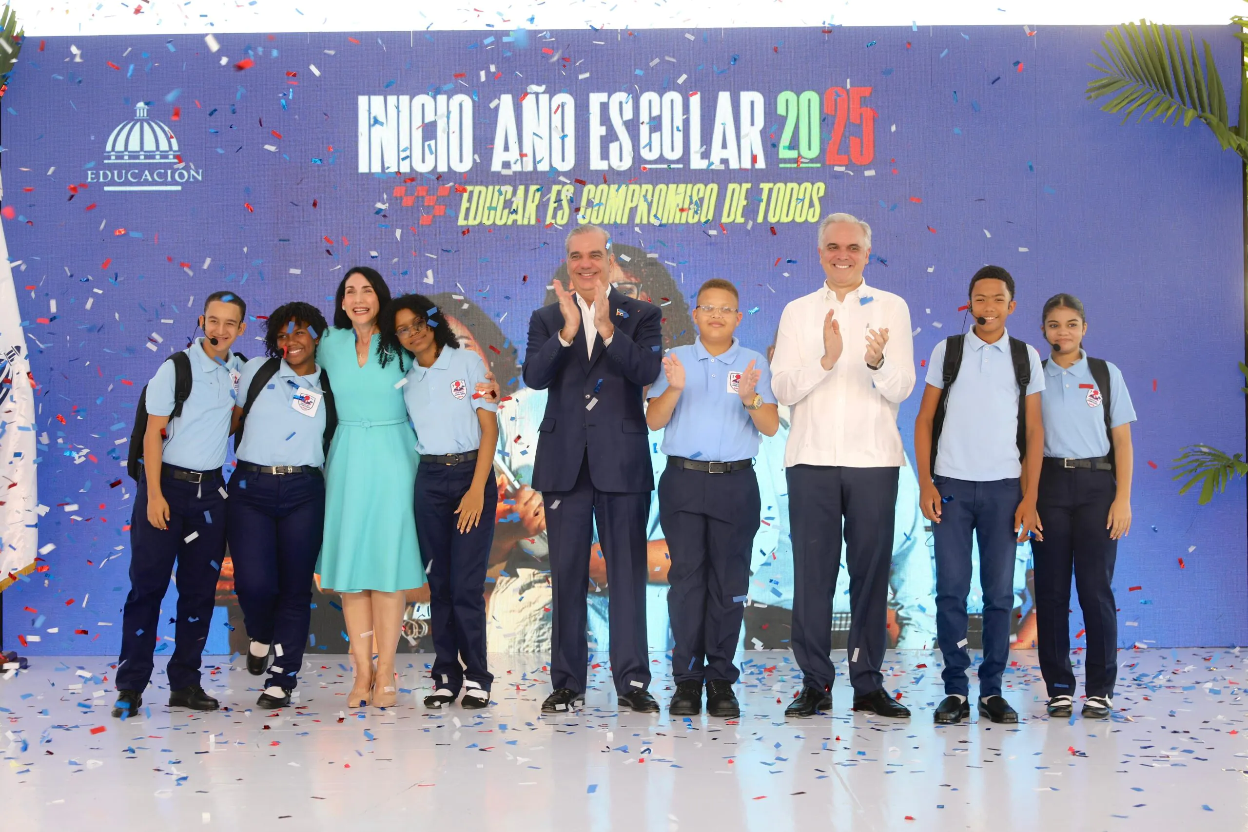El presidente Luis Abinader dio inicio este lunes al año escolar 2025-2026, durante un acto en la recién inaugurada Escuela Casandra Damirón, en Santo Domingo Este, con la incorporación de más de 2 millones 62 mil estudiantes en todo el país.