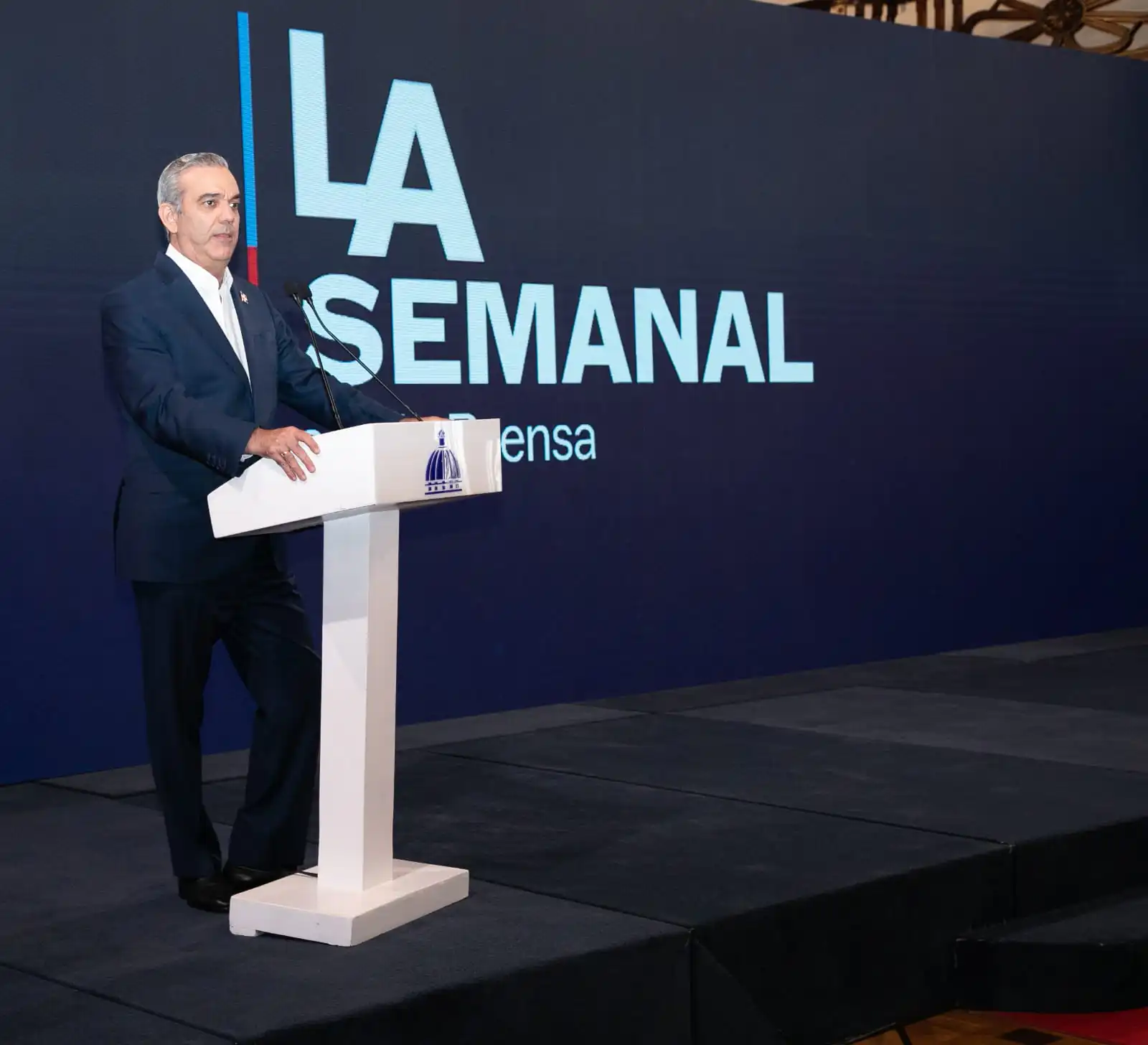 La presentación se llevó a cabo en el marco de La Semanal con la Prensa, bajo el tema central: «Libre competencia, motor del desarrollo», en el Salón Las Cariátides del Palacio Nacional.