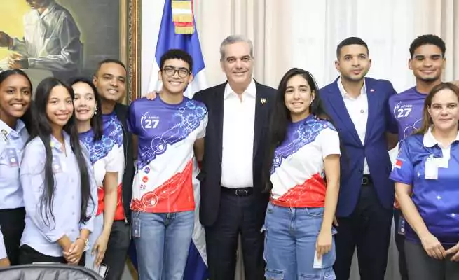 El presidente Luis Abinader recibió en el Palacio Nacional a 12 estudiantes de los niveles universitario y secundario que participan en el concurso anual NASA Human Exploration Rover Challenge, que organiza la Administración Nacional de Aeronáutica y el Espacio (NASA).