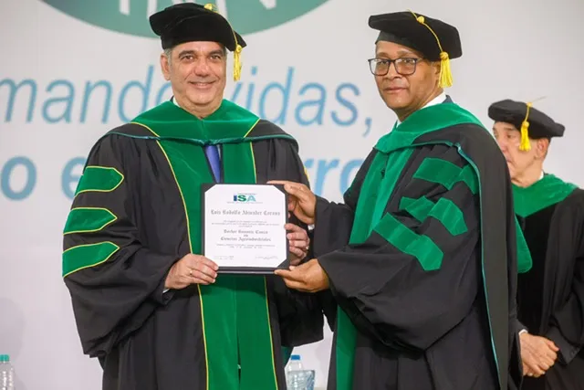 El presidente Luis Abinader recibió este sábado el título “Doctor Honoris Causa” en Ciencias Agroindustriales, la más alta distinción, otorgada por la Universidad ISA, en reconocimiento de su liderazgo visionario y las iniciativas impulsadas para fortalecer los programas educativos y el sector agroindustrial y productivo del país.