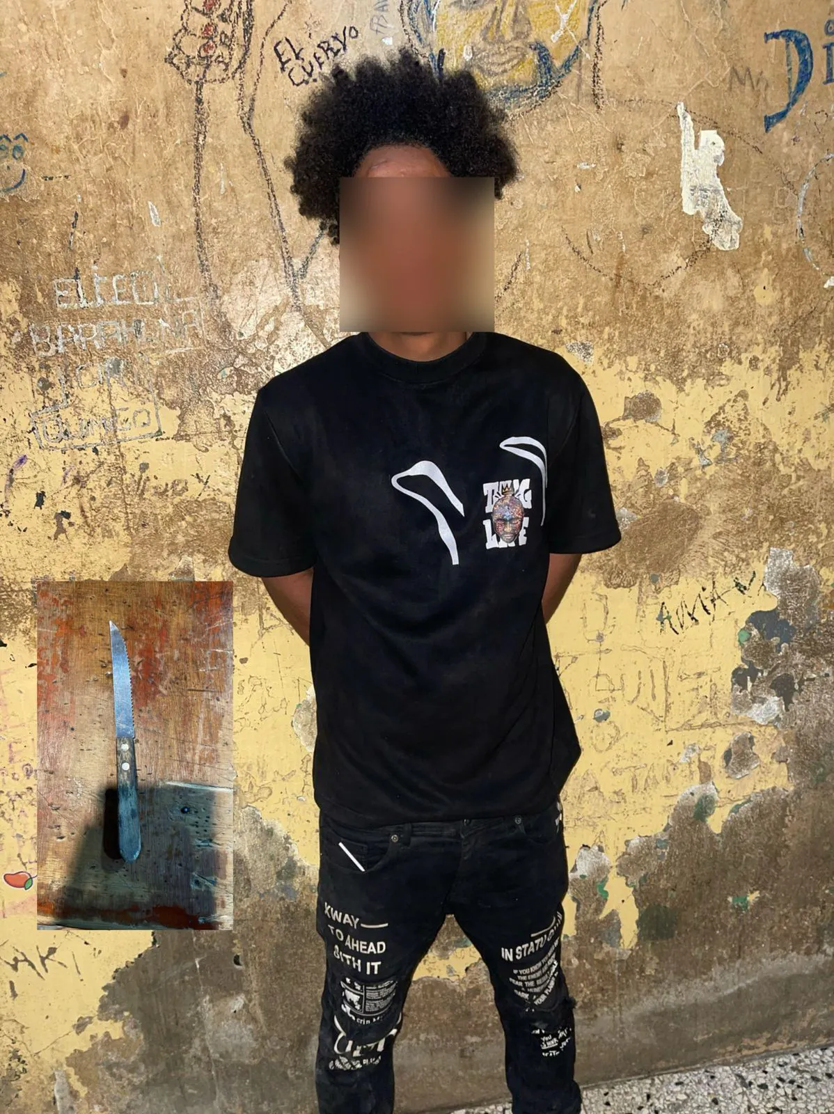 Ante la situación, se inició una persecución que culminó con la detención de uno de los atacantes en la calle 2 del sector San Antonio. El detenido fue identificado como Daniel Ramírez Montero, alias «Mafu», de 30 años, a quien se le confiscó un cuchillo plateado con empuñadura de madera marrón, de aproximadamente 4 pulgadas.