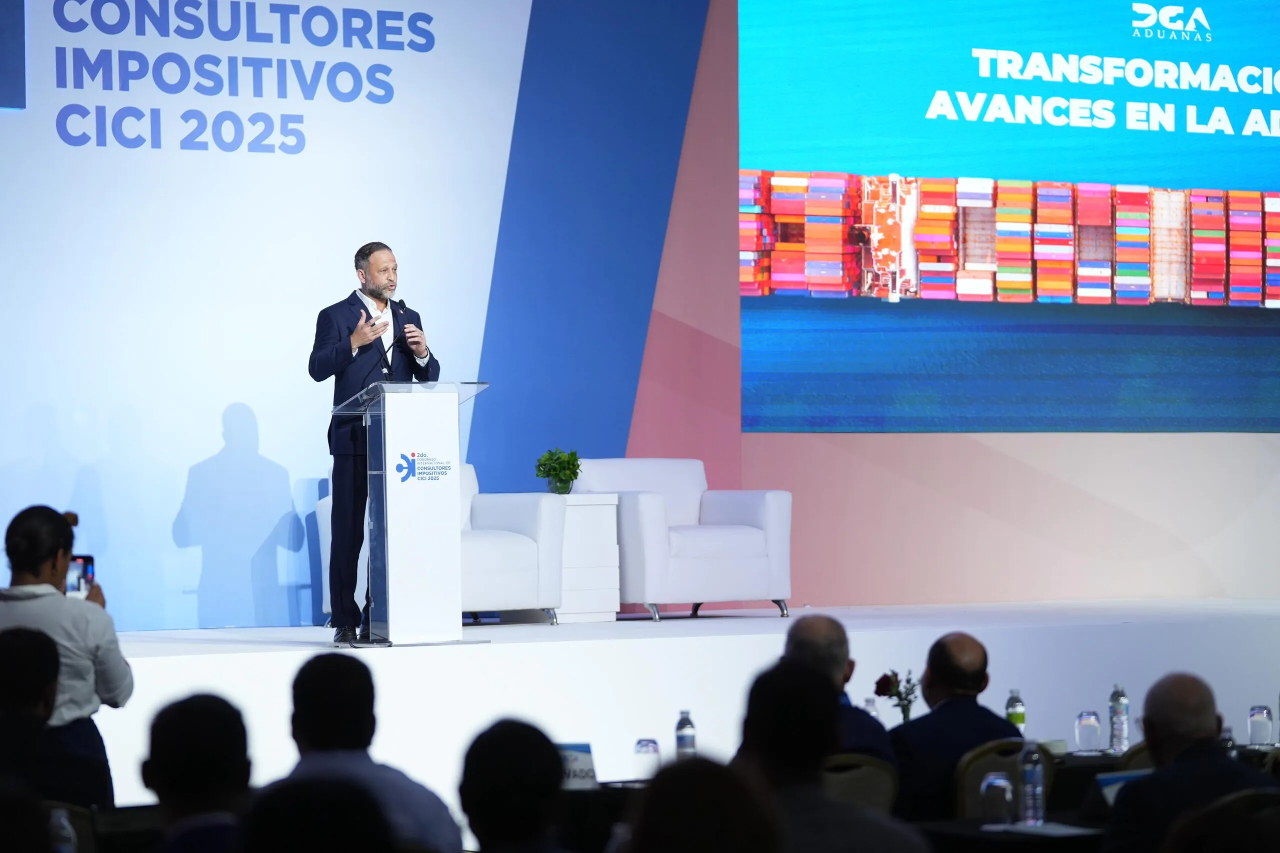 Durante el Segundo Congreso Internacional de Consultores Impositivos CICI 2025, Daniel Peña, subdirector de Aduanas, en representación del director general de Aduanas, Yayo Sanz Lovatón, destacó que las transformaciones legales, tecnológicas y de infraestructura que ha implementado la actual gestión de Aduanas, responden a una nueva cultura de visión y servicio, y al objetivo gubernamental de convertir al país en un hub logístico y las oportunidades que esto trae para la economía dominicana.