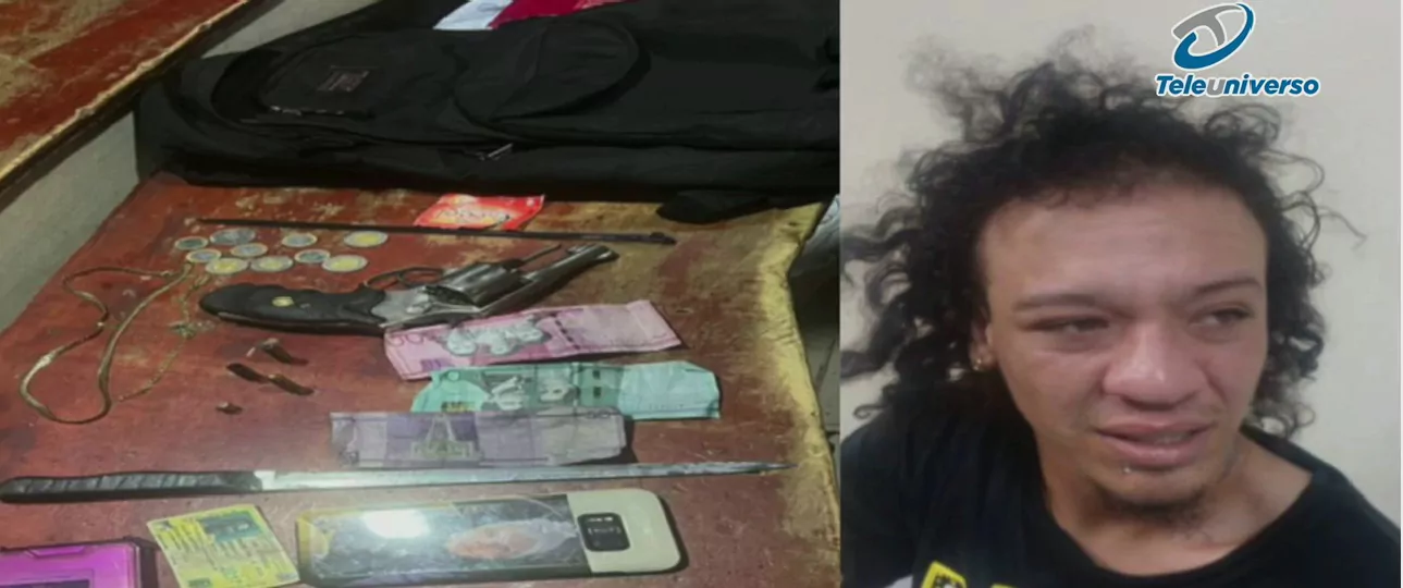 El reconocido asaltante herido es Jesús Brito Núñez (a) (Aretico) de 24 residente en la calle La Martínez, La Vega, a quien se le ocupó el revólver marca Smith & Wesson 38, que portaba sin documentos, y con la que asalto a la fémina.