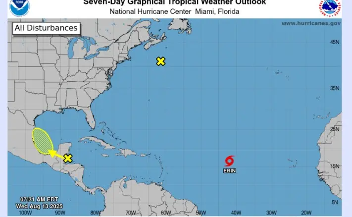 Según alertó este martes el Centro Nacional de Huracanes de Estados Unidos (NHC, en inglés), Erin podría convertirse el jueves en huracán, el primero de la temporada del Atlántico, mientras crece el riesgo de que se acerque a Puerto Rico.