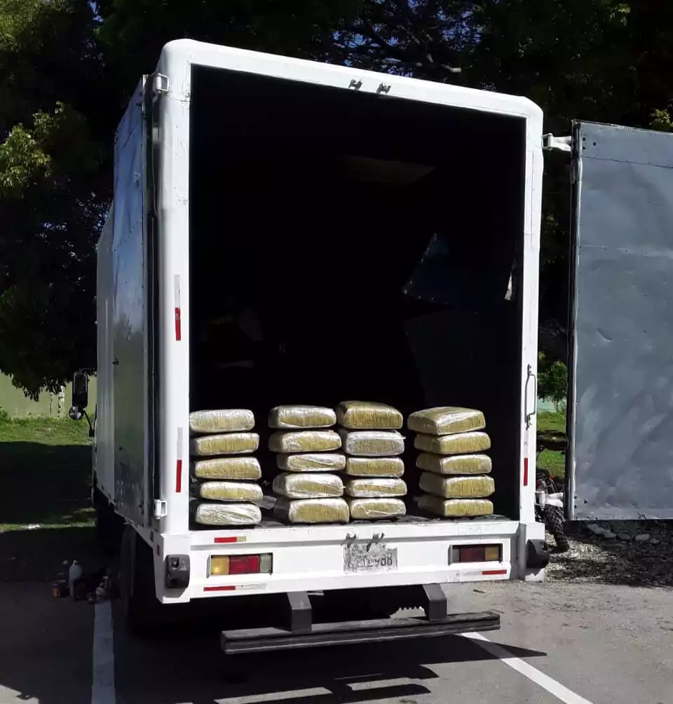 En presencia de un fiscal se inicio el protocolo de inspección, logrando ocupar en la parte trasera del camión una caleta de metal, con un doble fondo, en cuyo interior se hallaron 20 pacas, con un peso preliminar de 200 libras.