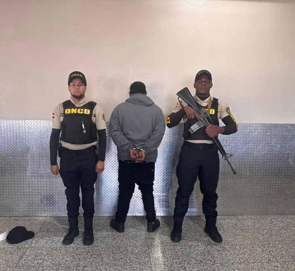 La Dirección Nacional de Control de Drogas (DNCD) y miembros del Ministerio Público, apoyados por agencias de inteligencia e inspectores de Migración, arrestaron en el Aeropuerto Internacional de las Américas, a un dominicano que pretendía viajar a Colombia, con impedimento de salida por violar la ley 50-88, sobre drogas y sustancias controladas en el municipio de Nagua, provincia María Trinidad Sánchez.