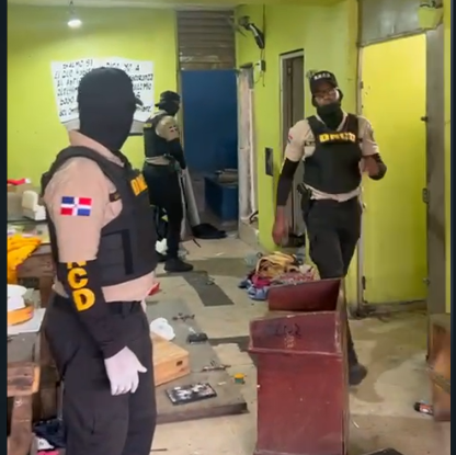 de igual manera, se incautaron dos pistolas calibre nueve milímetros, con su cargador y varias cápsulas, 06 balanzas, un radio de comunicación, decenas de armas blancas, 30 máquinas tragamonedas y RD $21,000 pesos dominicanos.