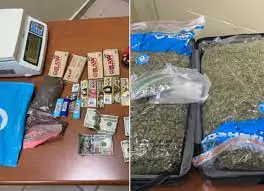 En presencia de un fiscal, se procedió abrir la maleta, encontrando en su interior dos fardos y una porción, presumiblemente de marihuana, con un peso aproximado de 33.03 libras.
