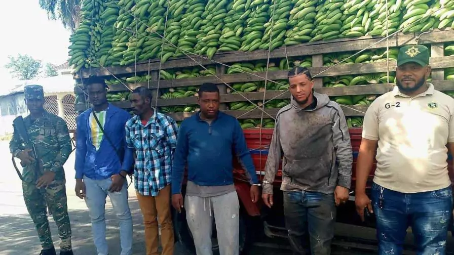 Dos hombres de nacionalidad dominicana fueron detenidos por miembros del Ejército de la República Dominicana cuando transportaban a dos nacionales haitianos indocumentados ocultos en un camión cargado de guineos verdes en el puesto de chequeo militar Bontoncillo, en Montecristi.