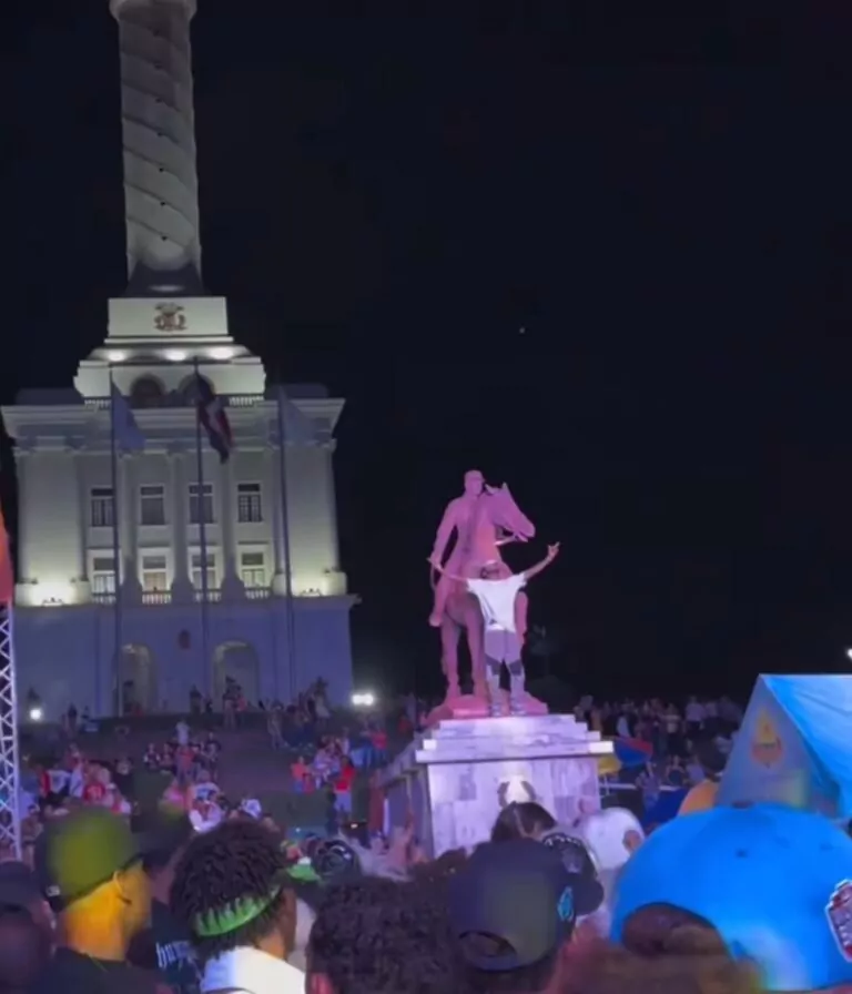 El cabildo de Santiago responde a la acción cometida por Yeudi Santos, residente en el sector Pekín en Santiago que el pasado domingo en la apertura del carnaval, con botella de ron en manos subió a la estatua.