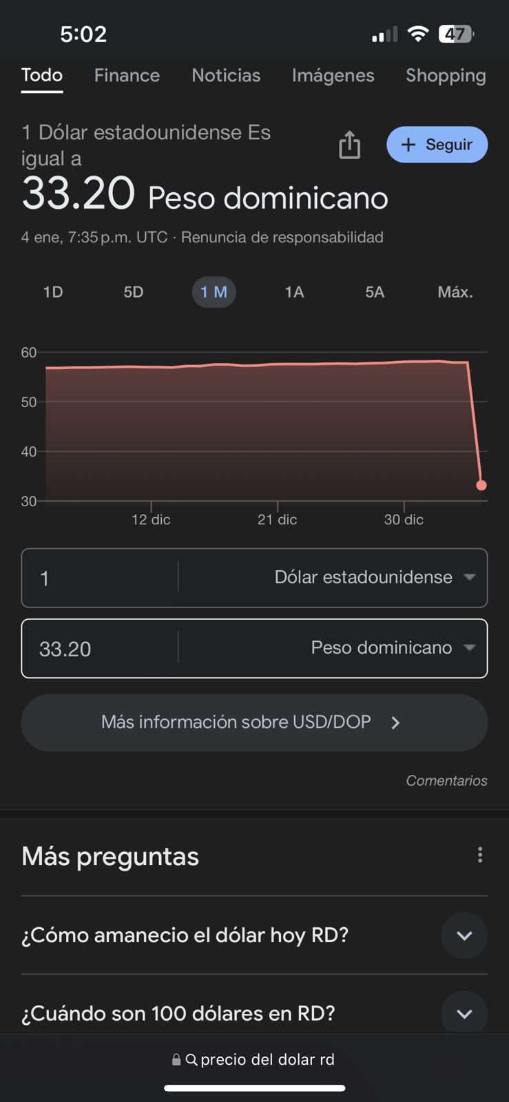 Sin embargo, el Banco Central explica que el dólar se sigue vendiendo a 58.63 y para la compra a 58.31, según el Banco Central del país, luego de que información de Google dijera que el peso estadounidense se vendía en la nación caribeña a RD$33.20.