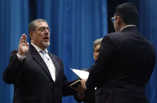 El activista anticorrupción de 65 años fue investido en el Congreso cinco meses después de ganar la segunda vuelta electoral contra la empresaria y ex primera dama Sandra Torres en agosto del año pasado.