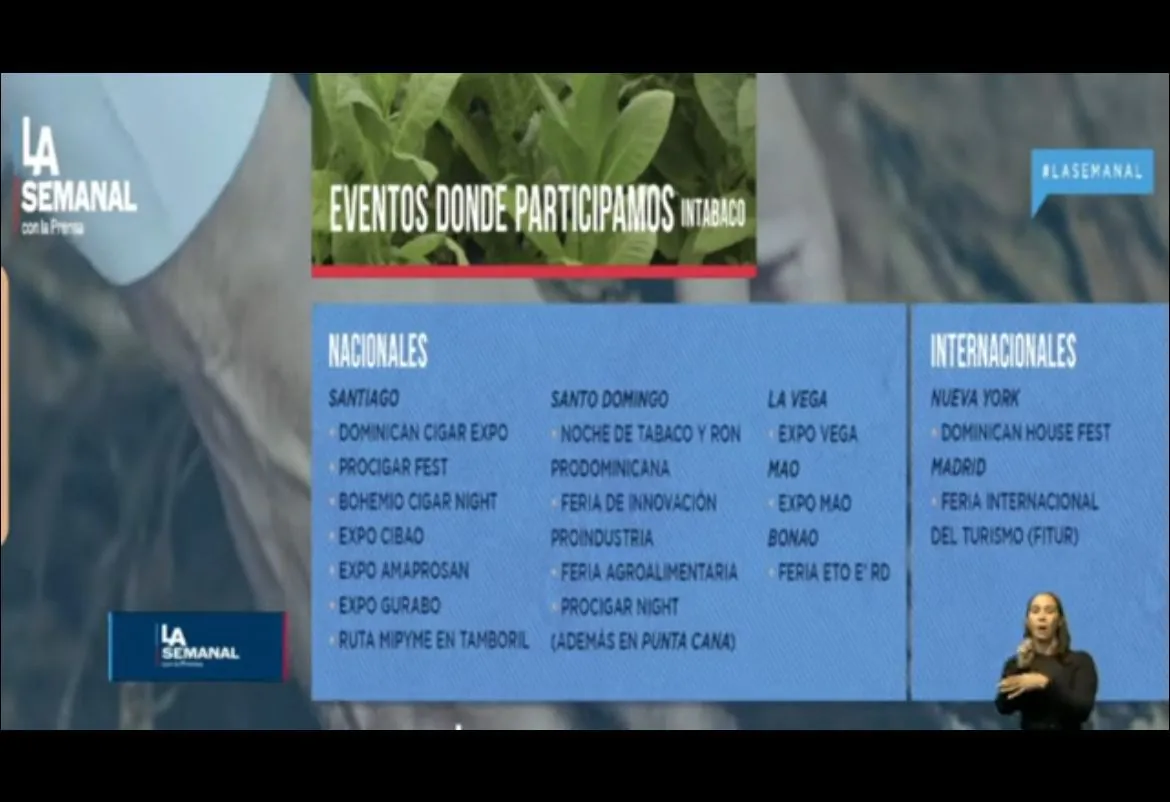 Durante la más reciente La Semanal, encabezada por el presidente Luis Abinader, INTABACO presentó un listado de los encuentros y celebraciones que más contribuyen a la promoción del tabaco dominicano y su impacto cultural, económico y turístico.