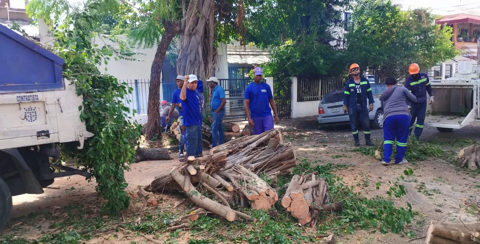 En una labor conjunta, el Cuerpo de Bomberos y brigadas operativos de la Alcaldía del Distrito Nacional retiraron alrededor de 40 árboles que cayeron en varios sectores.