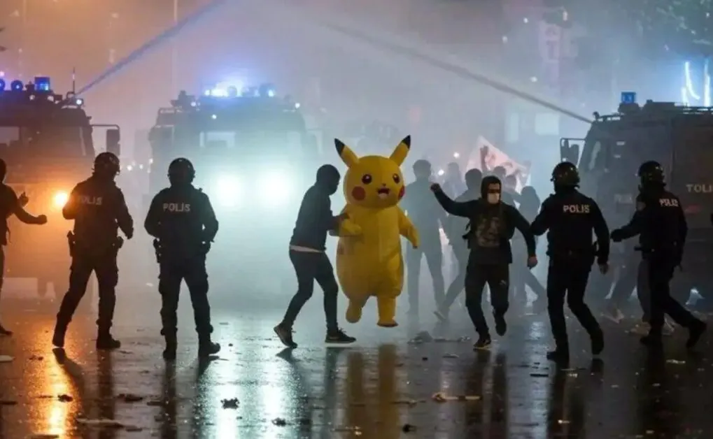 Fue captado Pikachu en protesta contra el gobierno de Turquía, quien tuvo que correr de la policía para no ser detenido.