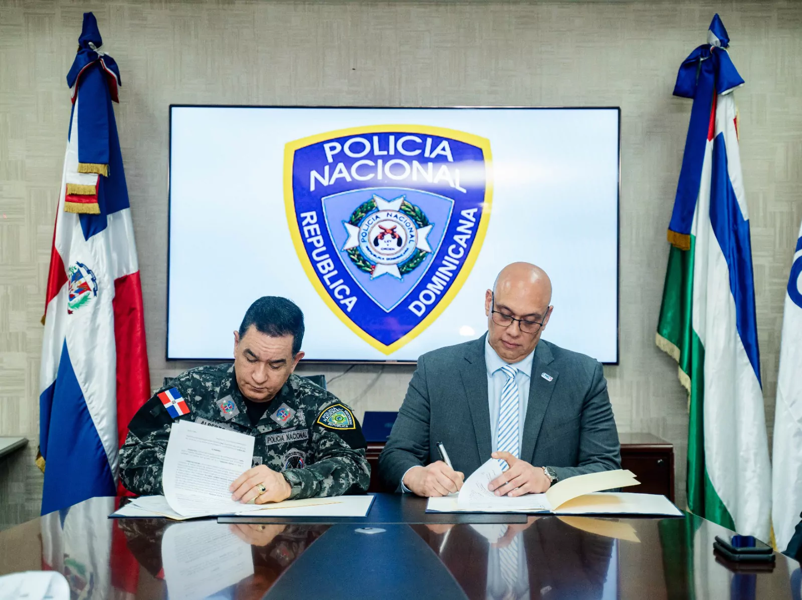 El acuerdo fue rubricado por los directores Juan Gabriel Gautreaux, del CNCS; y el mayor general Eduardo Alberto Then, de la P.N.