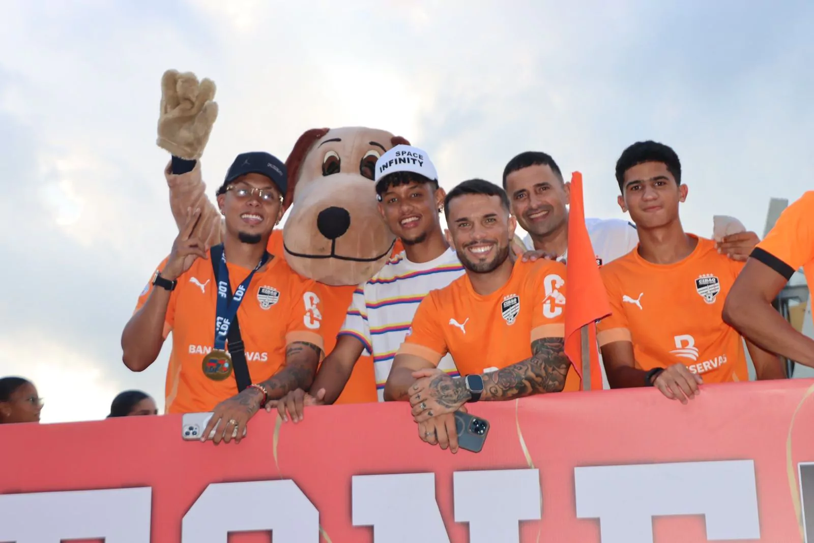 Jugadores, directivos, patrocinadores, empleados, Lucas la mascota, y los apasionados fanáticos del Cibao FC se congregaron en el estadio para iniciar el recorrido. Una caravana de vehículos y motocicletas seguía de cerca la patana que transportaba a los campeones junto a sus trofeos.