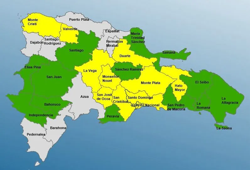 A pesar de que se espera que el fenómeno comience a alejarse, las lluvias continuarán este sábado en provincias como La Altagracia, La Romana, Monte Plata, San Cristóbal, La Vega, Santiago, El Seibo, Hato Mayor, Duarte, Puerto Plata y otras, especialmente durante la tarde y la noche.