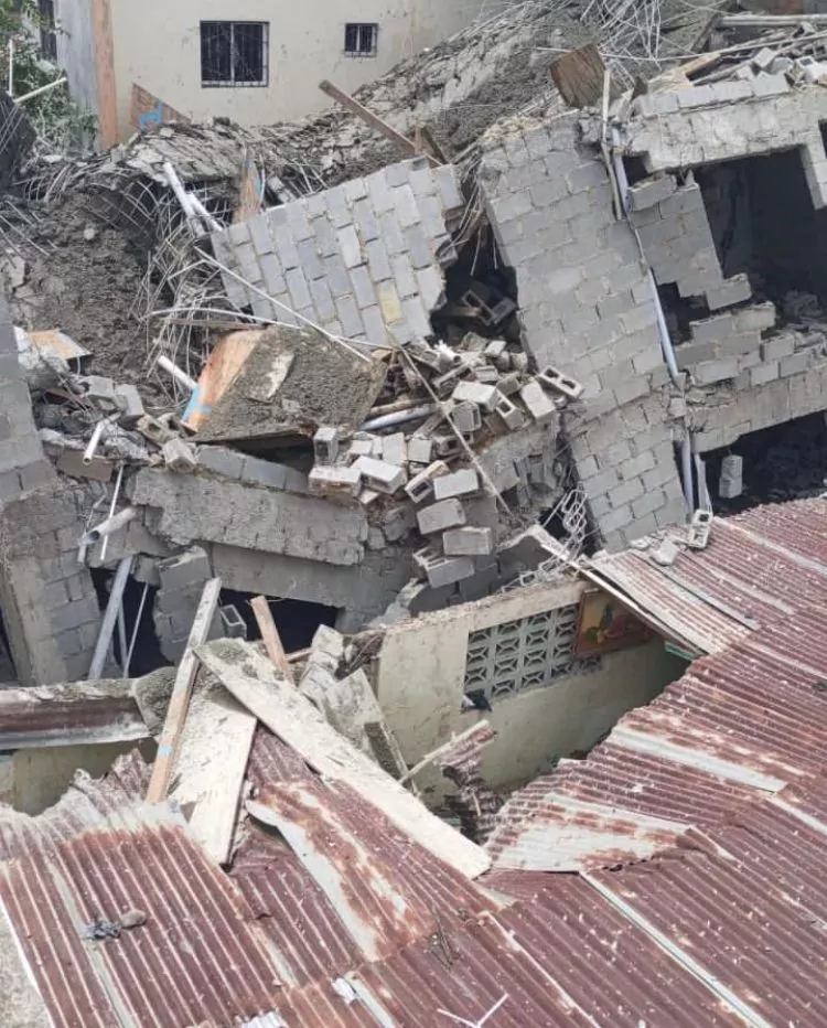Colapsó este viernes Un edificio de cuatro niveles en construcción en San Cristóbal.