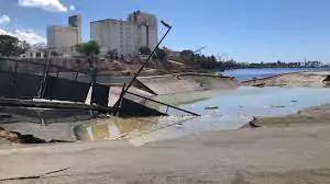 Videos que circulan en las redes sociales muestran cómo la estructura, a orillas del río Ozama se ha derrumbado de manera secuencial.