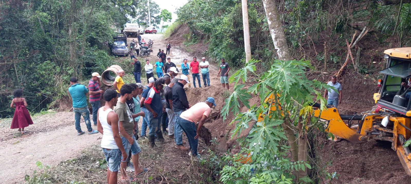 Las autoridades indicaron que fue habilitado el paso de manera provisional en uno de los puntos más afectados, que comunica las comunidades de La Rosa y Las Agüitas, para que los transeúntes que se desplazan en motocicletas y vehículos livianos puedan transitar, aunque con extrema precaución.
