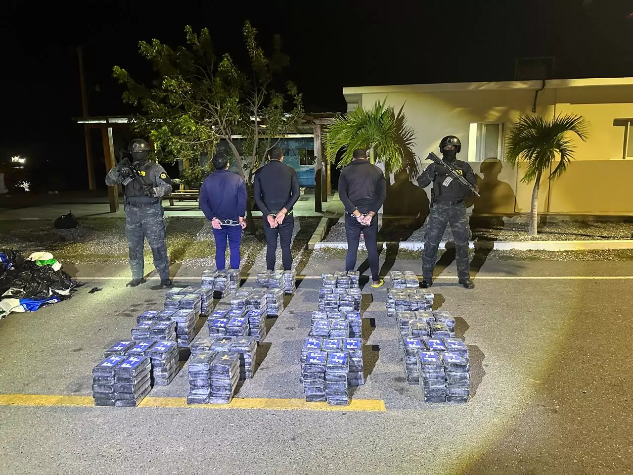 Al abordar la lancha, se arrestaron a tres hombres (dos venezolanos y un dominicano) y se encontraron 16 pacas envueltas en fundas negras, conteniendo en su interior, los 395 paquetes de la sustancia que se presume es cocaína.