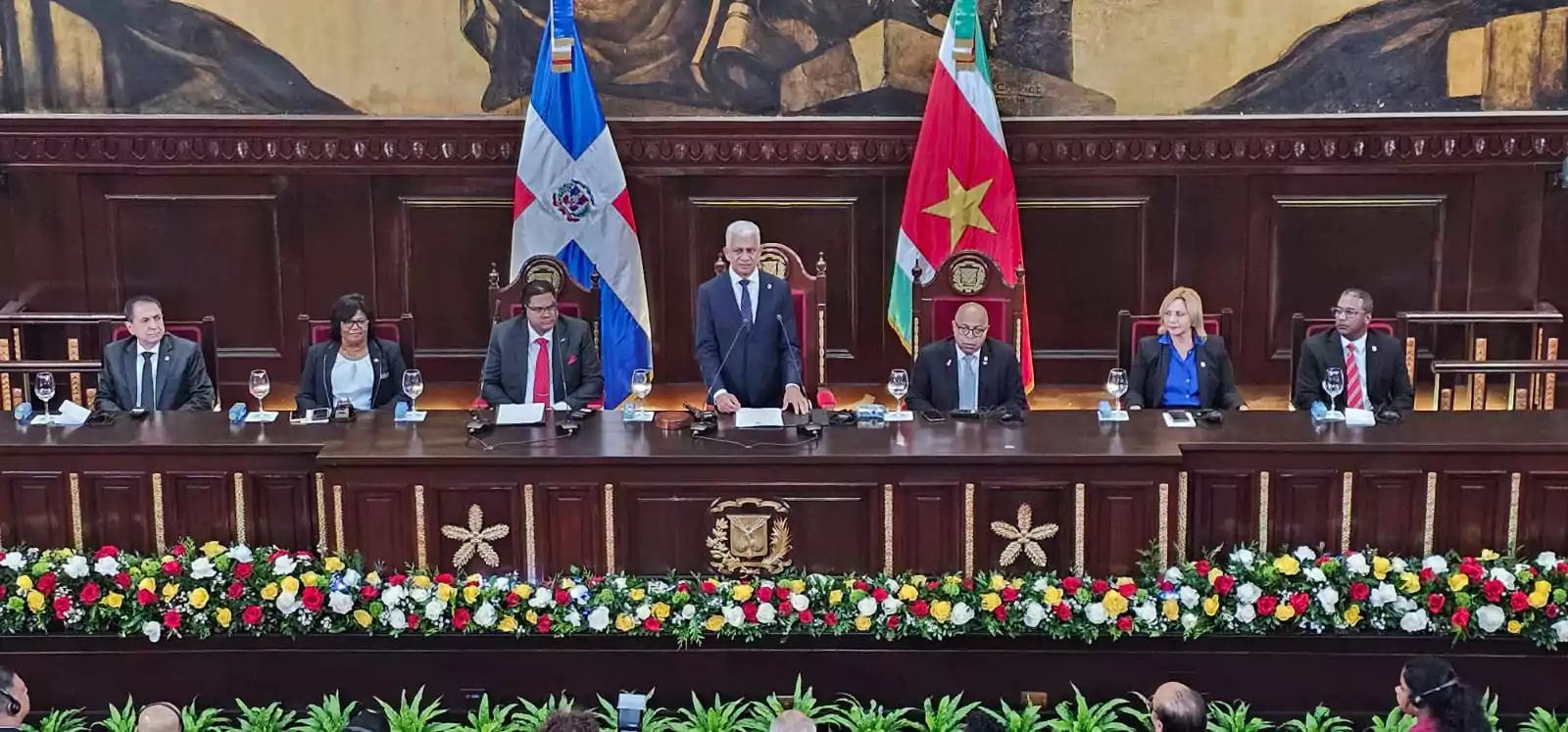El Congreso Nacional se constituyó en Reunión Conjunta para recibir este jueves al presidente de la República de Surinam, Chandrikapersad Santokhi, en una ceremonia solemne que se realizó en el Salón de la Asamblea Nacional, como parte de la visita oficial del mandatario al país.
