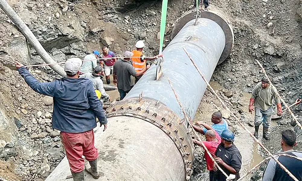 La tubería afectada forma parte de la línea de captación que transporta agua cruda hacia los acueductos Cibao Central y Tierra Dura, en la provincia Espaillat, con una capacidad de conducción de cinco metros cúbicos por segundo, equivalente a unos 115 millones de galones diarios.