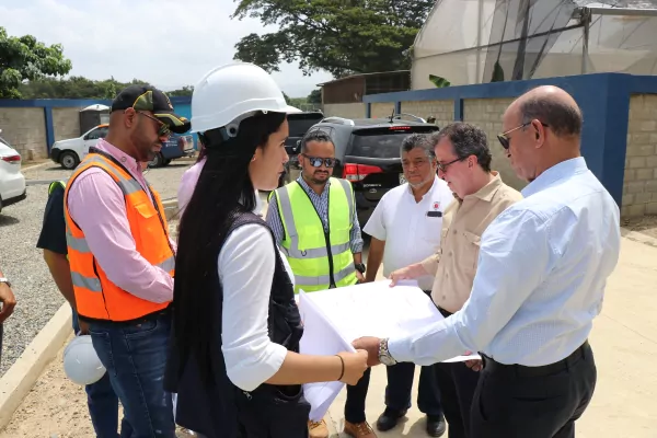 El ingeniero Andrés Burgos, director general de la CORAASAN, supervisó las obras junto a los empresarios Ricardo Fondeur, Fernando Puig y Saúl Abreu, comitiva del colectivo Compromiso Santiago.