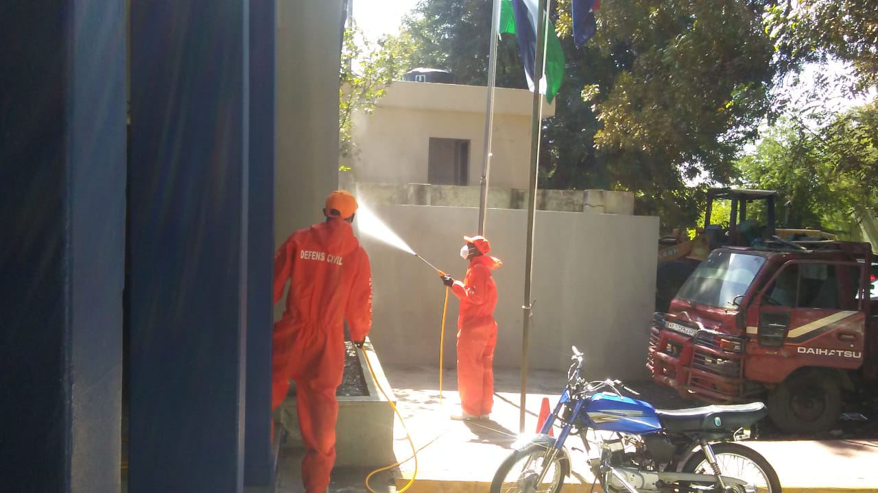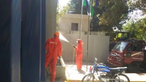 La Defensa Civil de la Provincia de Santiago interviene este viernes el Municipio de Villa González con los operativos de desinfección en instituciones públicas, entre ellas, el Instituto del Tabaco, Agricultura, Policía Nacional, Bomberos, Alcaldía de Villa Gonzalez, entre otras.