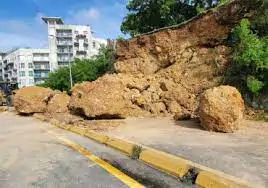 El deslizamiento de tierra ocurrido en la Avenida Malecón próximo al puente flotante en Villa Duarte, Santo Domingo Este, ocurrió alrededor de las 2:00 de la madrugada de este lunes bloqueado la vía.