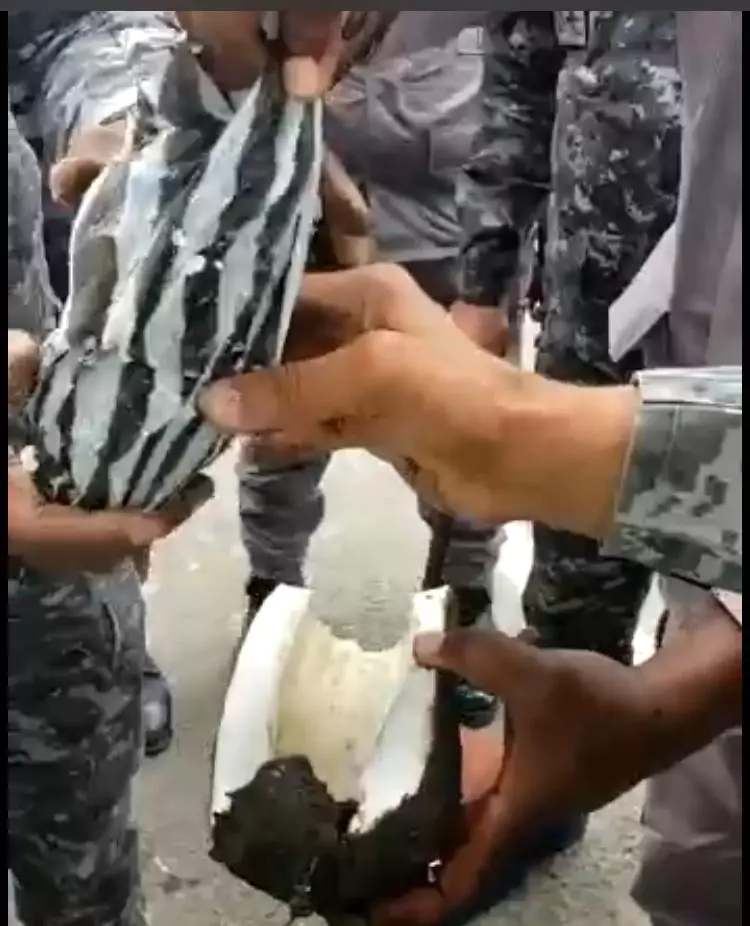 Así quedó constatado en un video que ha circulado por las redes sociales desde la tarde de hoy donde se aprecia el momento en que los agentes van partiendo el producto mientras encuentran la presumible droga.