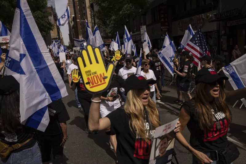 Los participantes lanzaron consignas exigiendo la liberación de los rehenes en Gaza el domingo, durante un desfile en la ciudad de Nueva York que atrajo a miles de personas y se realizó bajo fuertes medidas de seguridad.