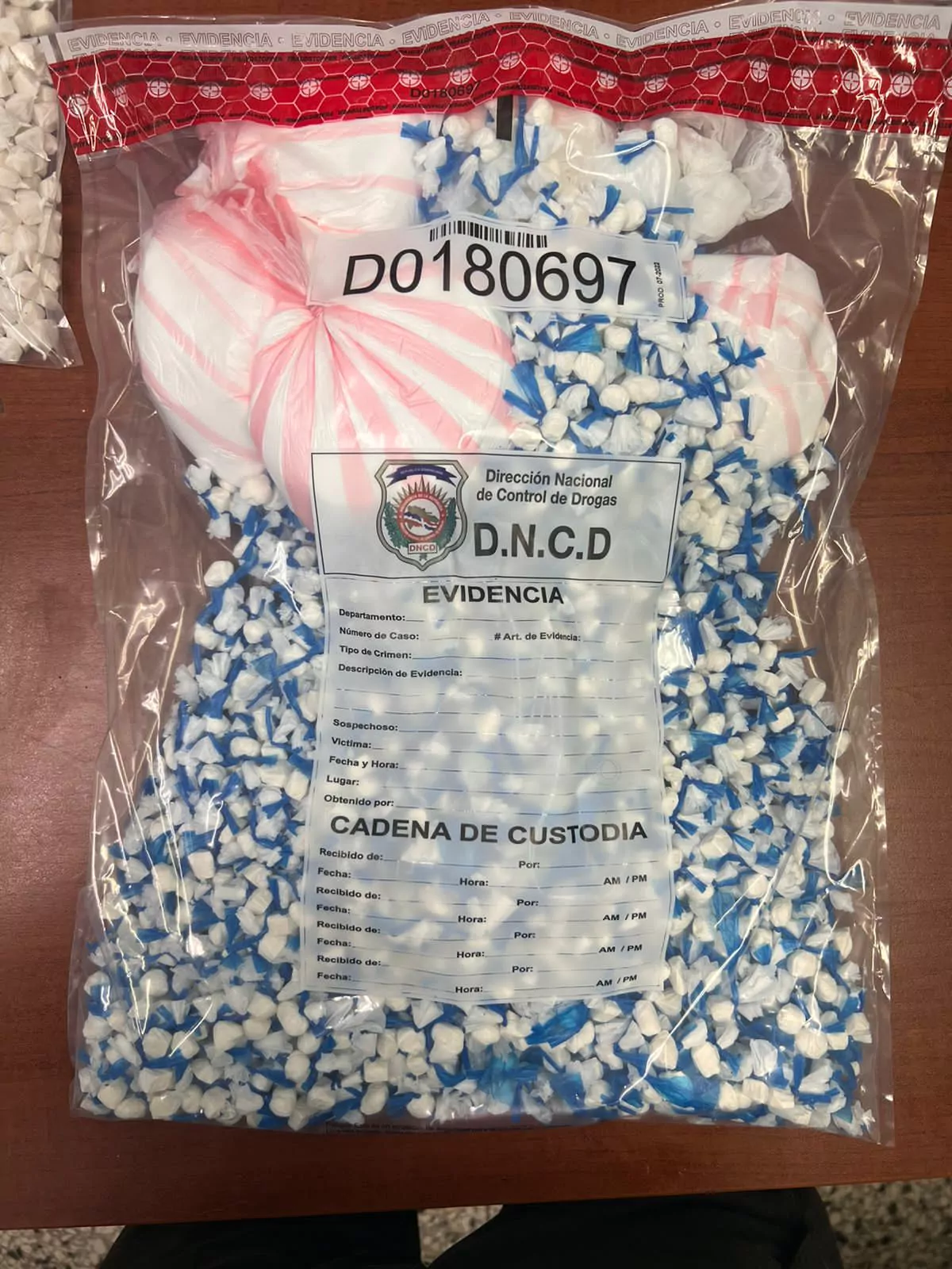 Además, se ocuparon dos yipetas, una Jeep Grand Cherokee y otra Toyota 4Runner, 746 mil 645 pesos dominicanos, 57 dólares estadounidenses, una máquina de contar dinero, prendas, dos balanzas, una pistola calibre nueve milímetros y otras evidencias.