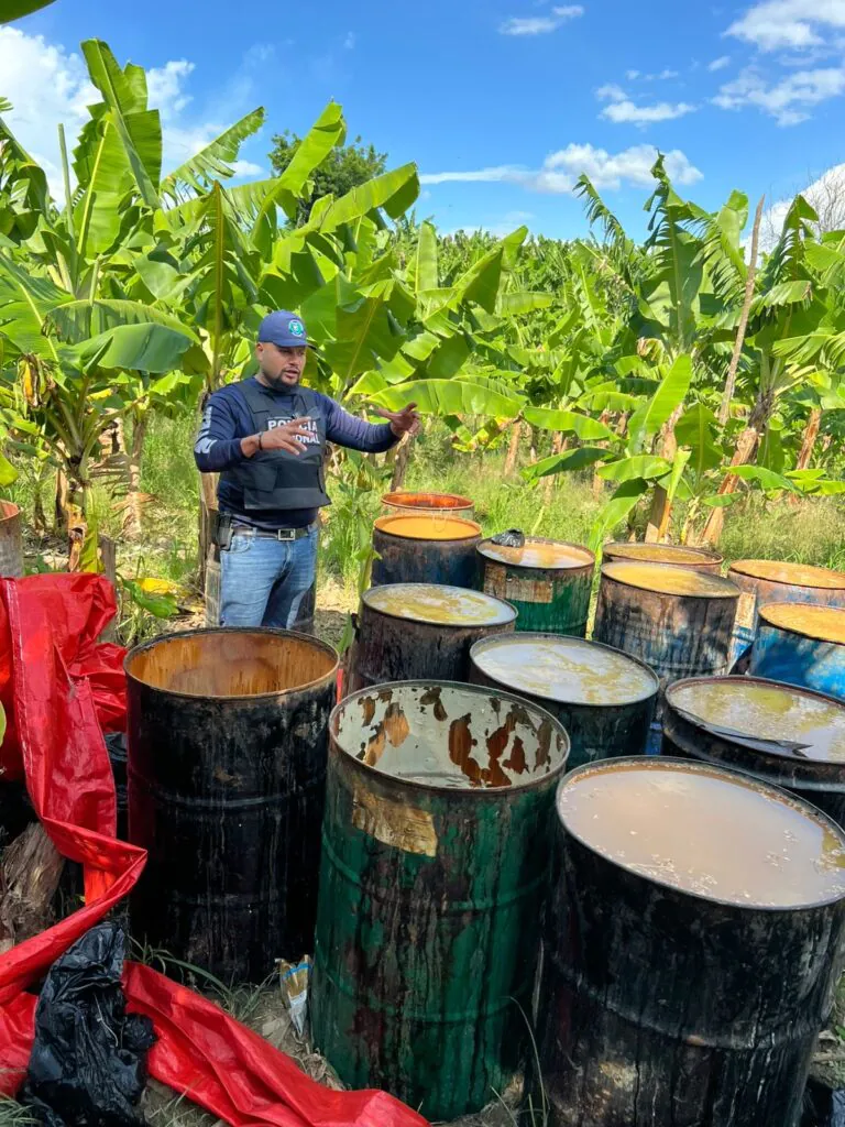 Agentes de la Subdirección Regional Cibao Central de Inteligencia (DINTEL), en coordinación con el equipo SWAT, la Policía Preventiva, el Cuerpo Especializado de Control de Combustibles (CECCOM) y el Ministerio Público, desmantelaron un laboratorio clandestino de fabricación de clerén en el sector Pontón del municipio de Navarrete, en esta provincia de Santiago, donde fueron detenidos dos ciudadanos haitianos sorprendidos en flagrante delito.