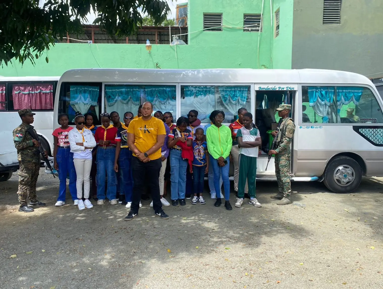 El ejército detuvo a Rudauny Pérez Gómez en Santiago Rodríguez cuando transportaba 16 haitianos indocumentados en un autobús Toyota blanco.