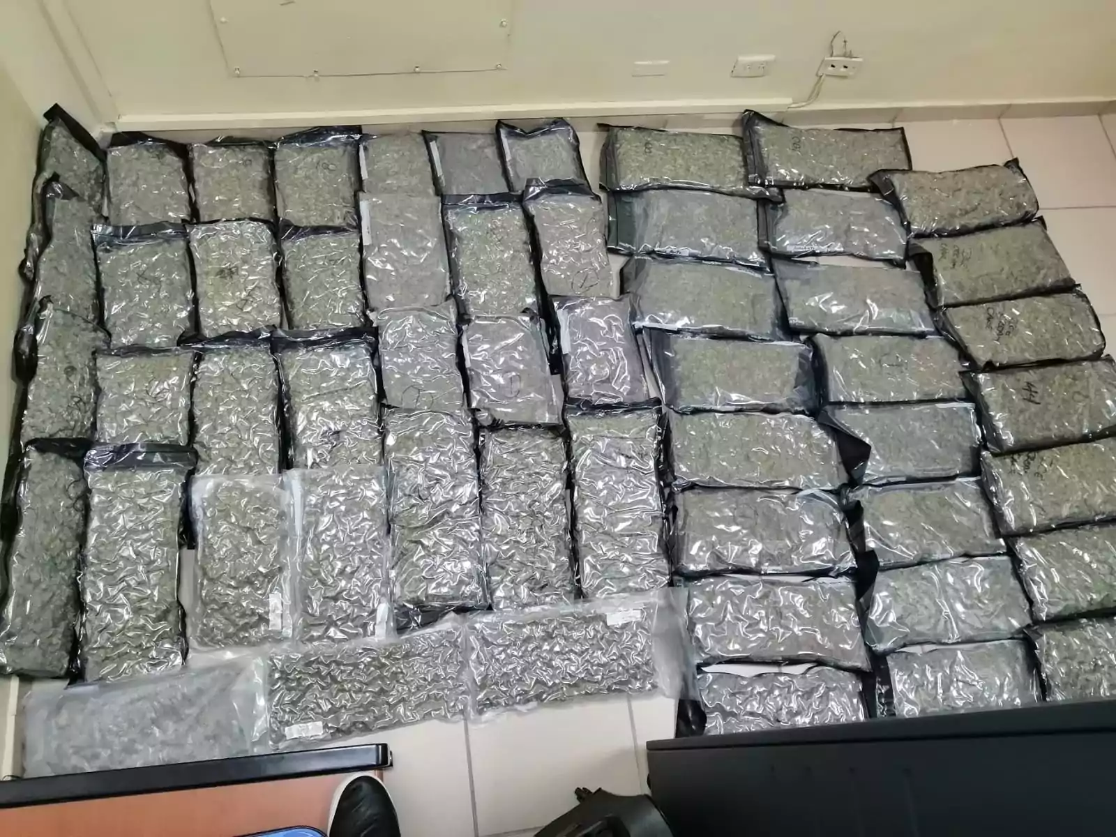 En un operativo de inspección, coordinado por miembros del Ministerio Público, la Dirección Nacional de Control de Drogas (DNCD) y agentes del Cuerpo Especializado de Seguridad Aeroportuaria, ocuparon 54 paquetes presumiblemente marihuana, en el Aeropuerto Internacional del Cibao, Santiago de los Caballeros.