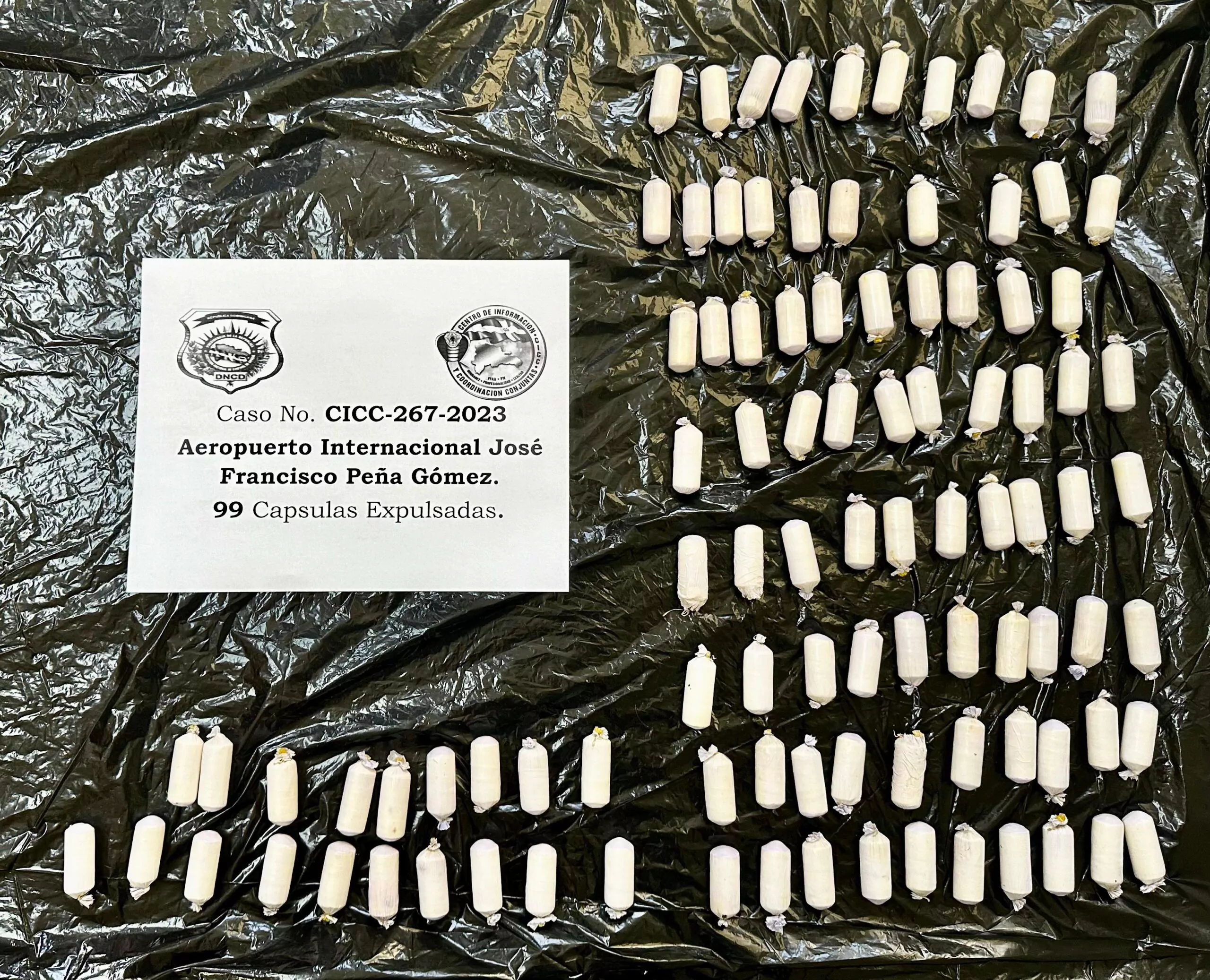 Las autoridades informaron que el dominicano expulsó 99 bolsitas presumiblemente cocaína, con un peso aproximado a un kilogramo de la sustancia.