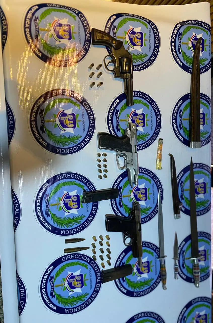 A Abreu Collado se le ocupó un revólver marca Taurus, calibre 38, con cuatro cápsulas; una pistola marca Smith & Wesson, calibre 9mm, con su cargador y ocho cápsulas, ambas sin ningún tipo de documentación, además de dos puñales de diferentes tamaños.
