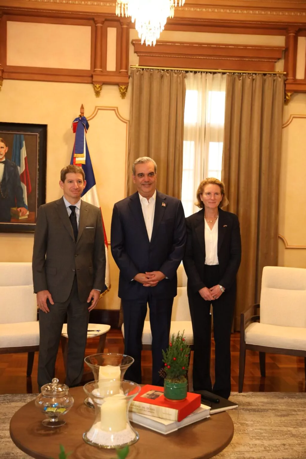 El presidente de la República, Luis Abinader, recibió este martes la visita del director ejecutivo de la Corporación Financiera de Desarrollo Internacional de los Estados Unidos (DFC, por sus siglas en inglés), Scott Nathan, y la administradora adjunta de la Agencia de los Estados Unidos para el Desarrollo Internacional (USAID), Isobel Coleman.