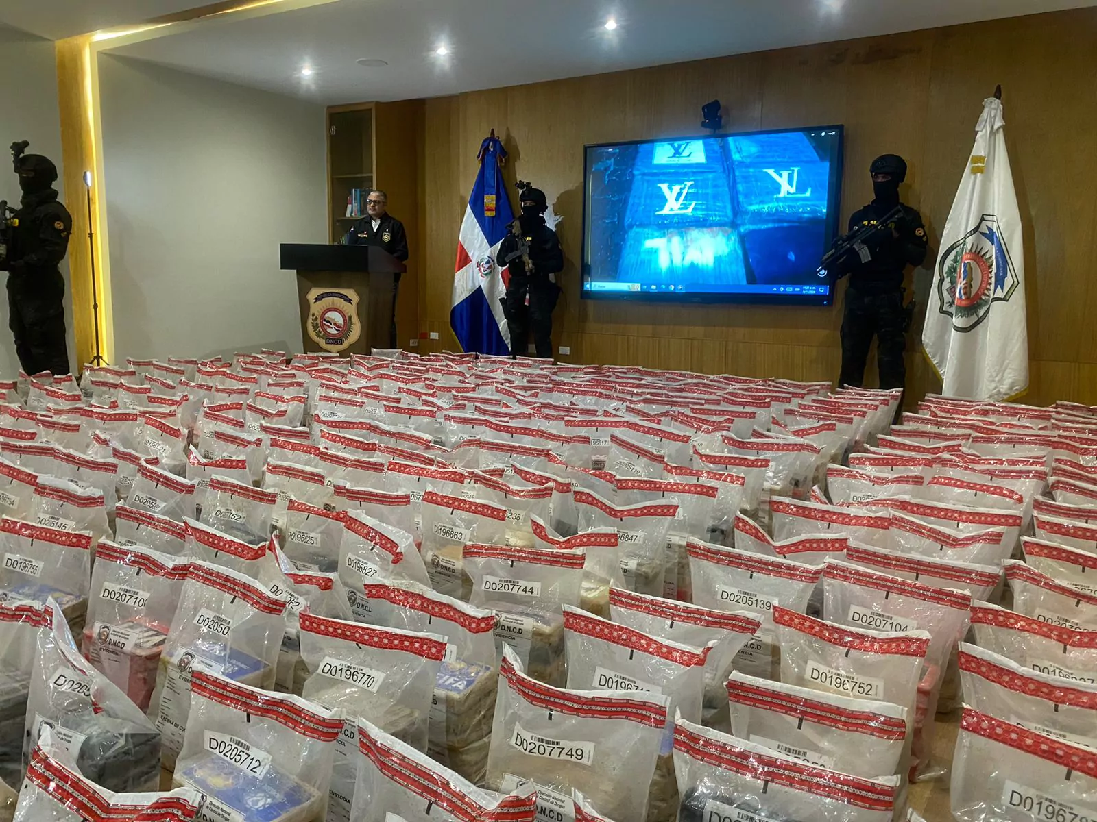 En lo que se considera uno de los cargamentos de mayor volumen confiscado en la historia del país, agentes de la Dirección Nacional de Control de Drogas (DNCD), apoyados por la Dirección de Aduanas, agencias de Inteligencia del Estado y la Seguridad Militar del Puerto Multimodal Caucedo, coordinados por miembros del Ministerio Público, ocuparon 2, 198 paquetes (2.2 toneladas) presumiblemente cocaína, durante una operación de interdicción conjunta, desarrollada la madrugada de este sábado en la referida terminal del municipio de Boca Chica, provincia Santo Domingo.
