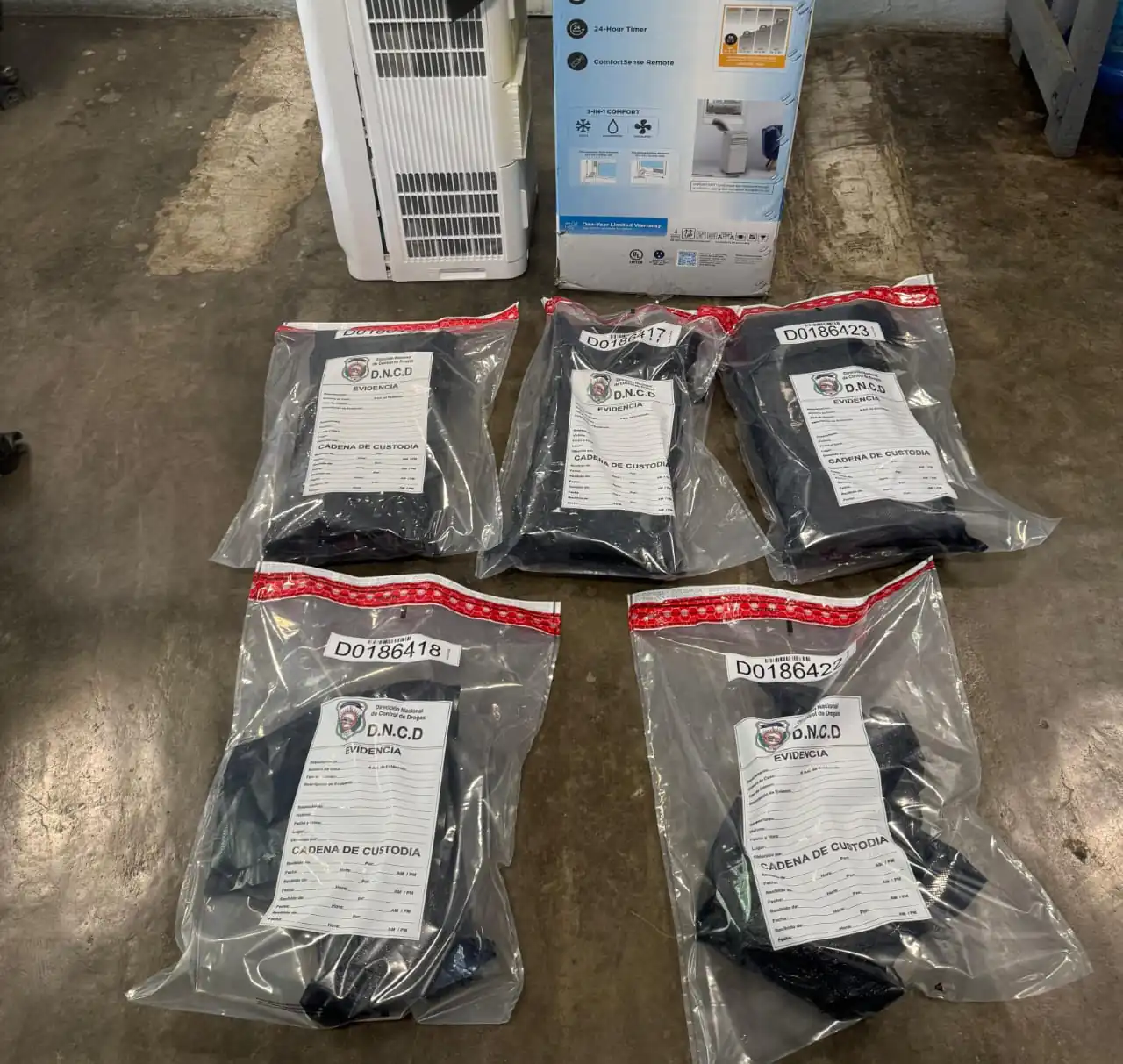 Agentes de la Dirección Nacional de Control de Drogas (DNCD), junto con miembros del Cuerpo Especializado de Seguridad Aeroportuaria (CESAC) y bajo la coordinación del Ministerio Público, incautaron varios paquetes de marihuana ocultos dentro de un aire acondicionado portátil durante una operación de inspección realizada en el Aeropuerto Internacional de Las Américas, José Francisco Peña Gómez (AILA-JFPG).