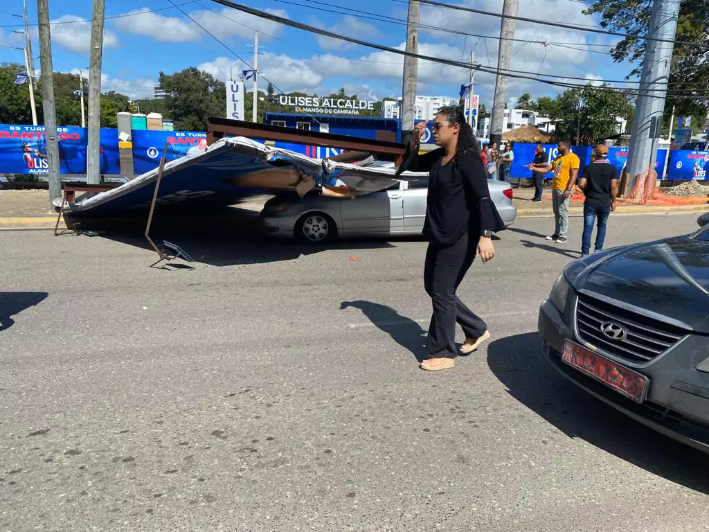 Dos personas resultaron heridas tras caer una valla en la Avenida Juan Pablo Duarte de la ciudad de Santiago.