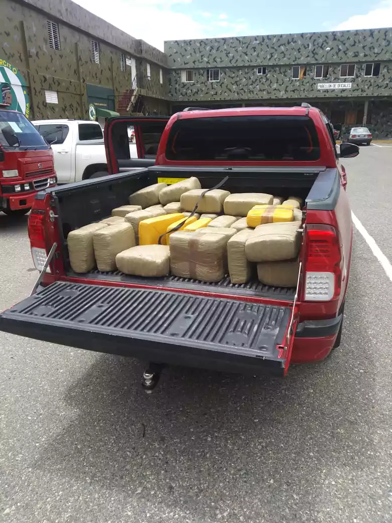 Precisan que fueron incautadas unas 46 pacas del vegetal, con un peso aproximado de 460 libras, el cual era transportado por el apresado en la camioneta Toyota, Hilux, roja, placa L370602.