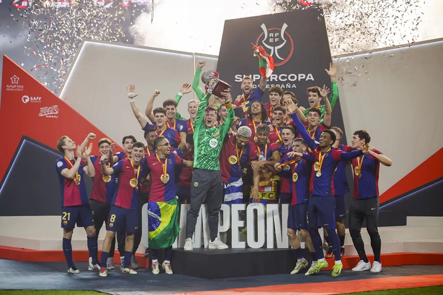 El Barcelona conquistó su decimoquinta Supercopa de España y es el equipo más laureado de la competición con dos galardones más que el Real Madrid, al que goleó por segunda vez esta temporada (2-5), remontando un tanto tempranero de Kylian Mbappé con un doblete de Raphinha y goles de Lamine Yamal, Robert Lewandowski de penalti y Balde.