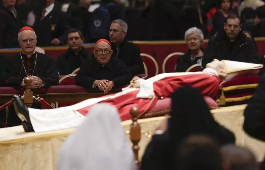 El cuerpo de Benedicto XVI fue expuesto entre el lunes y ayer en una capilla ardiente en la basílica vaticana por la que pasaron casi 200,000 files y sus restos fueron introducidos en la tarde del miércoles en la primera caja, revestida en su interior de terciopelo carmesí.