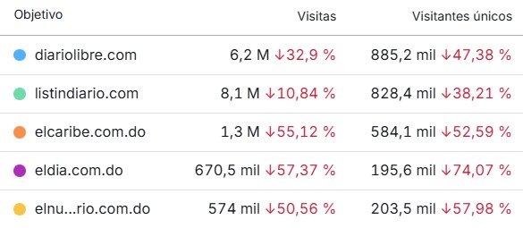 A continuación, presentamos un cuadro con los 20 medios de comunicación más visitados en la República Dominicana en enero de 2025: