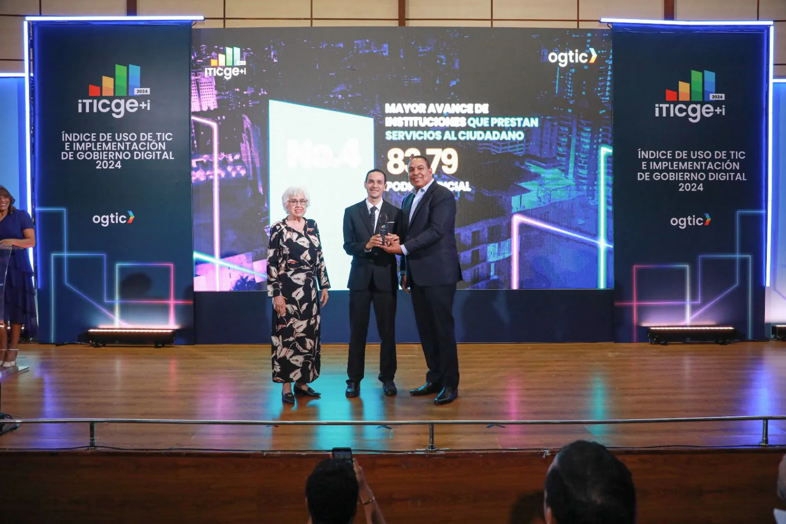 El Poder Judicial dominicano resultó ganador del 4to lugar en el renglón de Mejor Desempeño de Instituciones que Brindan Servicios a la Ciudadanía, en el marco de los premios iTICge 2024, organizados por la Oficina Gubernamental de Tecnologías de la Información y Comunicación (OGTIC).